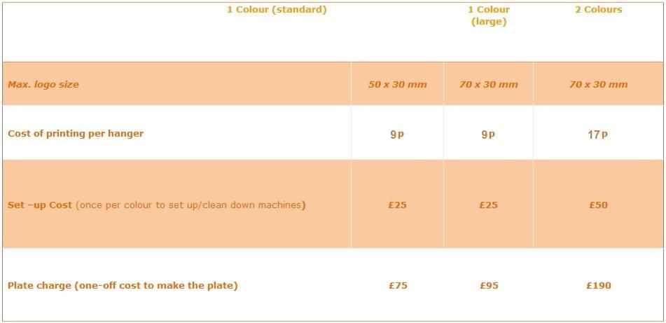 Please note that printing costs are in addition to the normal cost of the hangers.