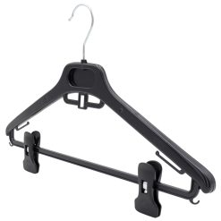 - Clip Bar – The trouser bar with rubber padded clips allows for the storage of garments such as trousers and skirts, making the hanger perfect for a suit or 2-piece outfit.