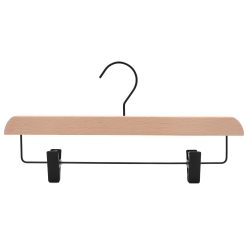 The Beechwood Clip Hanger (35cm) is a premium, durable and sustainably sourced hanger designed for trousers, skirts and a wide range of adult garments. Made from 100% FSC® certified beechwood, it combines eco-friendly materials with a clean, contemporary look. The natural wood grain paired with black metal fixings makes it ideal for both home use and professional retail displays.