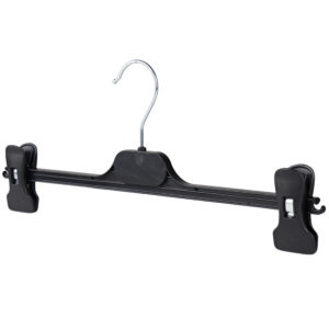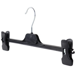 Black Plastic Hanger, Clips for Trousers and Skirts, 35cm