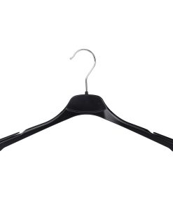 - Angled Design – The angled design of this black plastic ladies’ jacket hanger helps preserve the natural shape of your garments.