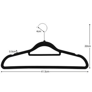 Black Velvet Coat Hanger, Slimline & Space-Saving, 42cm