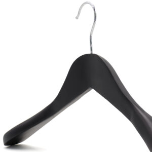 - Angled Design – The angled design of this black wood jacket hanger helps preserve the natural shape of your garments whilst in storage or while on display in your shop.