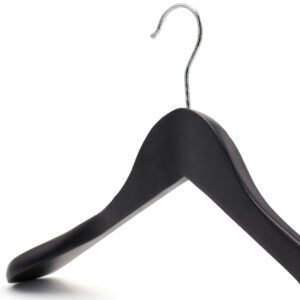 - Angled Design – The angled shape of this black wooden jacket hanger aims to preserve and enhance the natural shape of your shirts, jackets, coats and jumpers. So, it’s a great display hanger for high-end stores and boutiques, both traditional and contemporary.