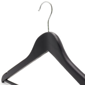 This black wooden hanger is in one of our most popular styles. It is the perfect all-round multipurpose wooden coat hanger.