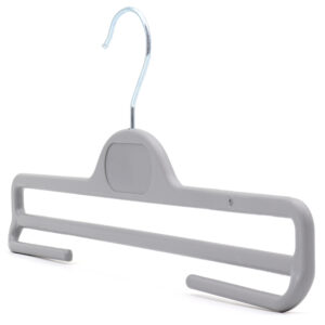 This grey plastic trouser hanger is a great value option for hanging and displaying trousers.