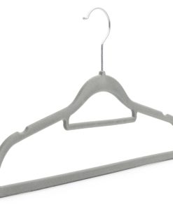- Multi-purpose – This grey velvet coat hanger has a trouser bar. It also has an additional bar for ties, belts and scarves. This makes it suitable for tops, shirts, blouses, skirts, trousers, suits, jackets and dresses. So it’s an extremely versatile clothes hanger.