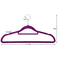 Purple Velvet Coat Hanger, Slimline & Space-Saving, 42cm