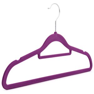 - Multi-purpose – This purple velvet coat hanger has a trouser bar. It also has an additional bar for ties, belts and scarves. This makes it suitable for tops, shirts, blouses, skirts, trousers, suits, jackets and dresses. So it’s an extremely versatile clothes hanger.
