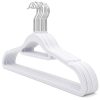 - High Quality – This velvet coat hanger uses strong, durable plastic and the hook has anti-rust chrome plating. So it should have a long and useful lifespan. Also the hook is 360-degree rotatable which makes it easier to get your clothes in and out of the wardrobe.