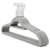 - Non-Slip – Flocked velvet-feel coating holds clothes firmly in place and stops them slipping off the hanger. Soft felt also helps to protect delicate garments. And it looks very stylish!