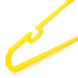 From a distance this may look like any standard yellow plastic coat hanger. However, just holding this style of heavy duty hanger is enough to see that it is far superior.