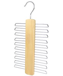 Tie Holder Rack in Wood, holds 20 Ties, Natural Wood/Chrome