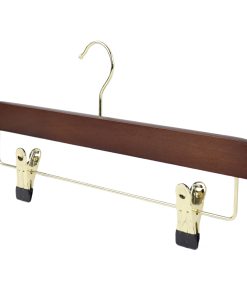 Dark Wooden Trouser/Skirt Hanger with Gold Metal Clips, 35cm
