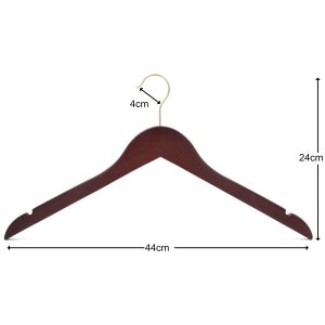 Dark Wooden Coat Hanger, 44cm, Gold Hook and Notches